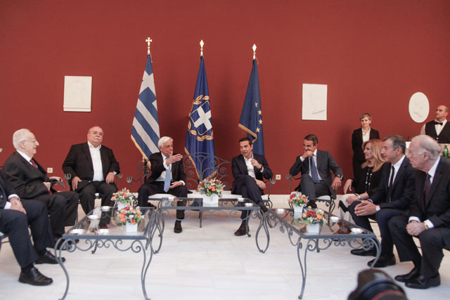 Δεν εμφανίστηκαν οι τρεις πρώην πρωθυπουργοί: η κ.Βασιλική Θάνου, ο κ.Λουκάς Παπαδήμος και ο κ.Παναγιώτης Πικραμμένος. Απόντες ήταν και οι πρώην πρωθυπουργοί Κώστας Σημίτης και Κώστας Καραμανλής.