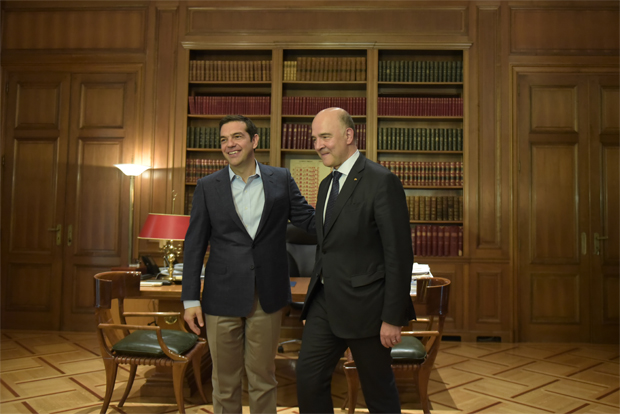 Τσίπρας σε Μοσκοβισί: Πάμε καλά, στηριζόμαστε στη βοήθειά σας (εικόνες)