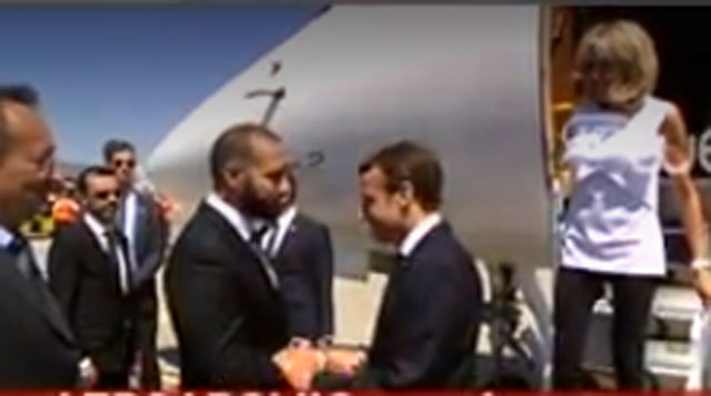 Ο υπουργός Επικράτειας και κυβερνητικός εκπρόσωπος Δημήτρης Τζανακόπουλος και ο Γάλλος πρεσβευτής στην Αθήνα, Κριστόφ Σαντεπί υποδέχθηκαν τον γάλλο πρόεδρο στο αεροδρόμιο «Ελευθέριος Βενιζέλος».