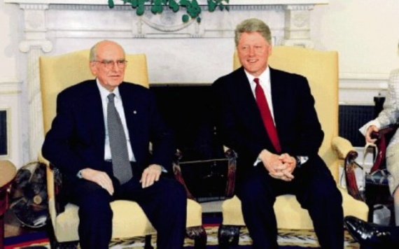 Για την ιστορία να αναφέρουμε ότι ο Κώστας Σημίτης ήταν ο μόνος Έλληνας πρωθυπουργός, μετά τον Κωνσταντίνο Καραμανλή, που είχε συναντήσει δύο διαφορετικούς προέδρους των ΗΠΑ στο Λευκό Οίκο. Τον Απρίλιο του 1996, ο Κώστας Σημίτης, τρεις μήνες μετά την εκλογή του ως πρωθυπουργού από την κοινοβουλευτική ομάδα του ΠΑΣΟΚ, συναντά (λόγω ασθενείας του Ανδρέα Παπανδρέου) τον Αμερικανό Πρόεδρο Μπίλ Κλίντον, στη σκιά του θερμού επεισοδίου στα Ίμια, στα τέλη του Ιανουαρίου της ίδιας χρονιάς. Ωστόσο, στο πρώτο του ταξίδι, ως πρωθυπουργός, ο Κώστας Σημίτης δεν είχε φιλοξενηθεί στον ξενώνα του Λευκού Οίκου καθώς η επίσκεψη του ήταν ανεπίσημη.