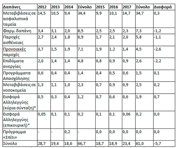 Το «ψαλίδι» έφθασε τα 5,7 δισ. ευρώ, καταρρίπτοντας τη ρητορική ΣΥΡΙΖΑ περί «κοινωνικής πολιτικής με έμφαση στην προστασία "ευαίσθητων" ομάδων που πλήττονται από τις επιπτώσεις των μνημονίων που υπέγραψαν οι κυβερνήσεις του ΠΑΣΟΚ και της ΝΔ».