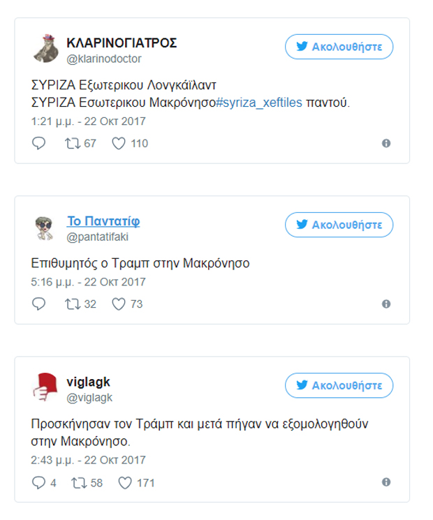 «Προσκύνησαν τον Τράμπ και μετά πήγαν στη Μακρόνησο για εξομολόγηση»: Το Twitter για το «σουρεαλιστικό» ταξίδι του ΣΥΡΙΖΑ
