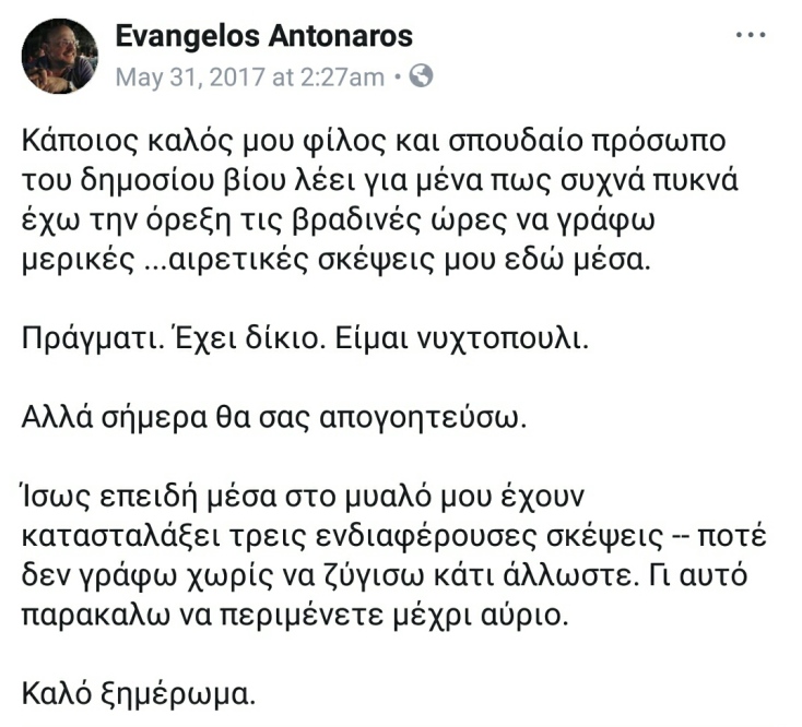 Οι πιο σπουδαίες αναρτήσεις του Ευάγγελου Αντώναρου