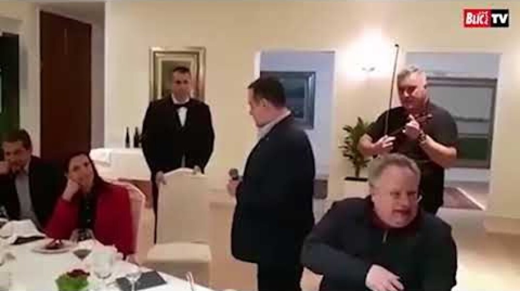 Μάλιστα, ο Σέρβος ομόλογος του Έλληνα υπουργού Εξωτερικών έσπασε στο τέλος κι ένα πιάτο με τον κ. Κοτζιά να αναφωνεί «σπάσ' τα όλα» και να αγκαλιάζει θερμά τον Σέρβο ομόλογό του, ενώ στο βίντεο ακούγεται και ένα «Ώπα!».