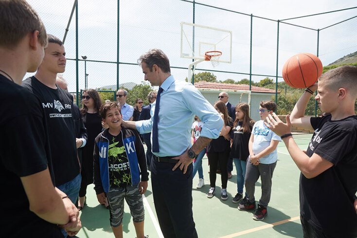Ο Μητσοτάκης στην Ίμβρο: Συνομίλησε με μαθητές και έπαιξε μπάσκετ (εικόνες)