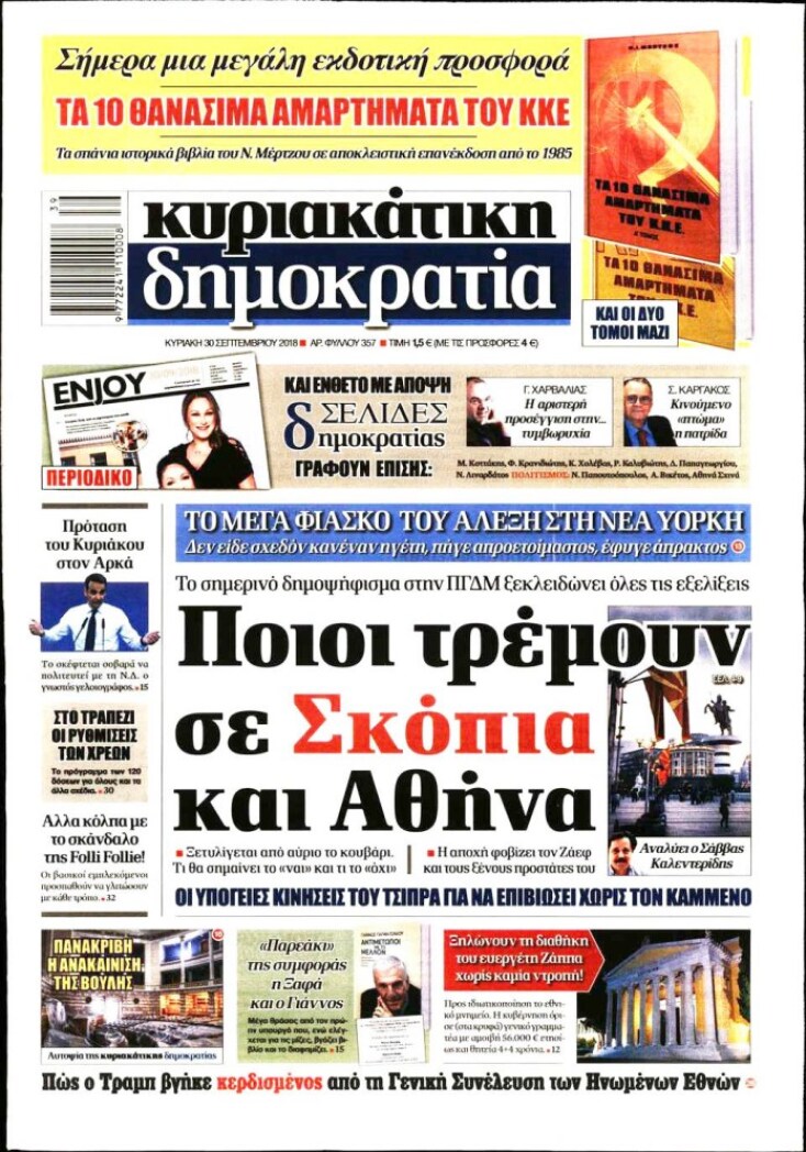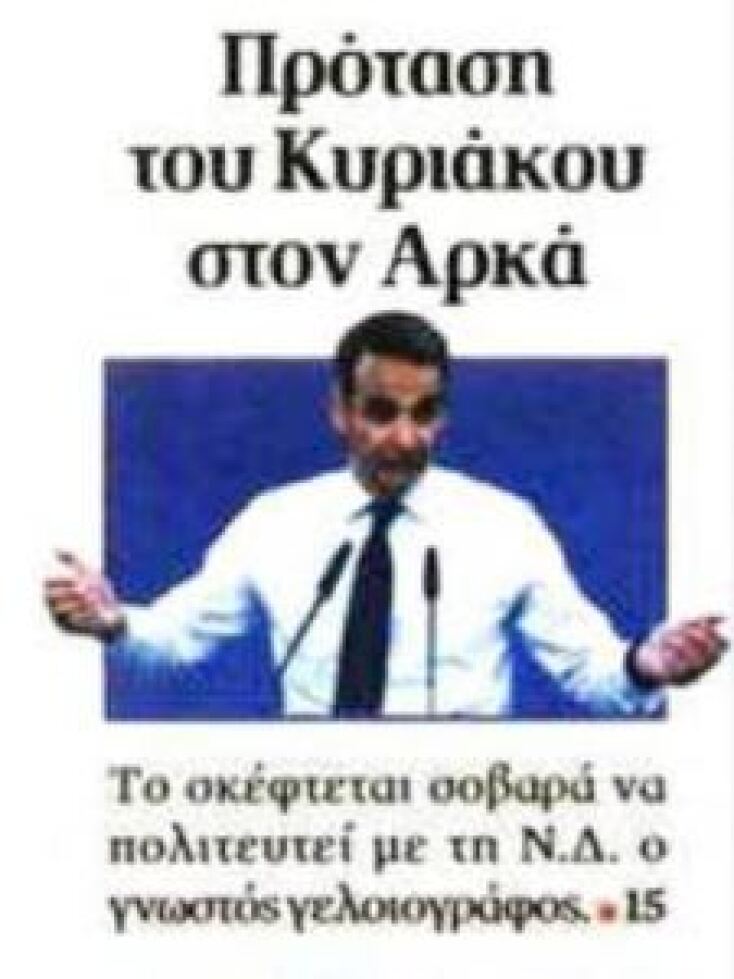 Στις 30-9-2018, η εφημερίδα «Κυριακάτικη Δημοκρατία» εμφάνισε στο εξώφυλλό της (μέση αριστερά) τον ισχυρισμό ότι «ο γνωστός γελοιογράφος σκέφτεται σοβαρά να πολιτευτεί με τη ΝΔ», μετά από «πρόταση του Κυριάκου».