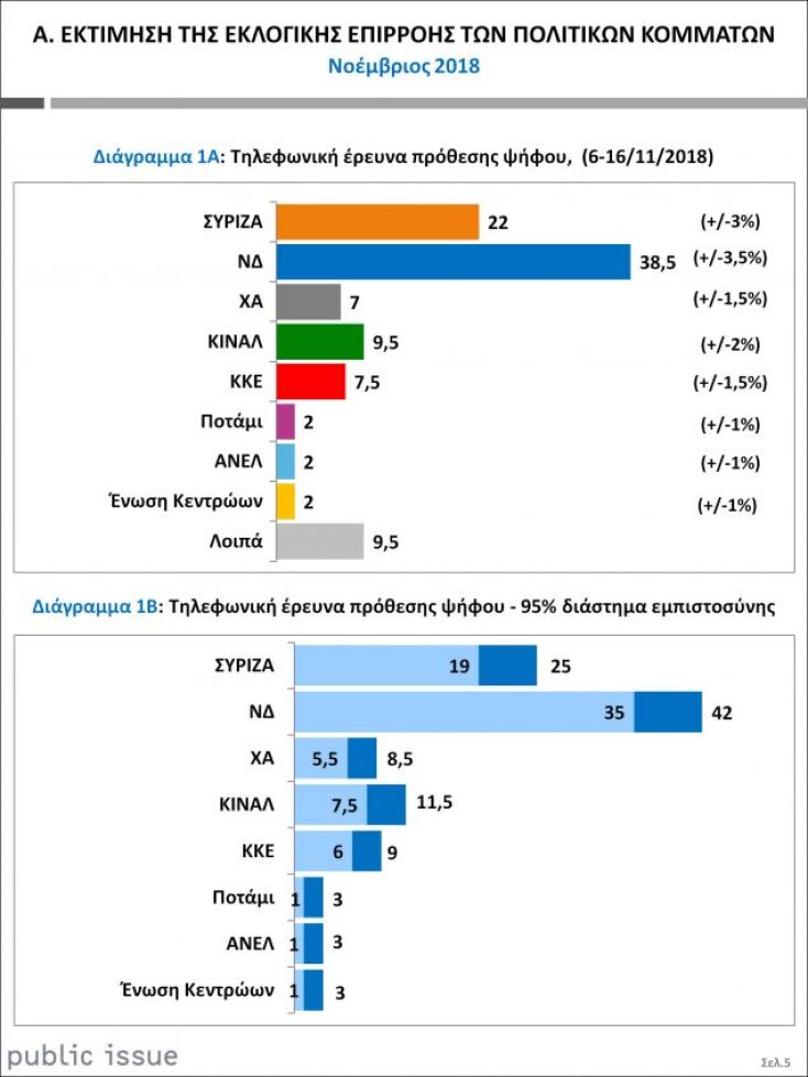 Public Issue: Στις 16,5 μονάδες η διαφορά ΝΔ - ΣΥΡΙΖΑ στην πρόθεση ψήφου