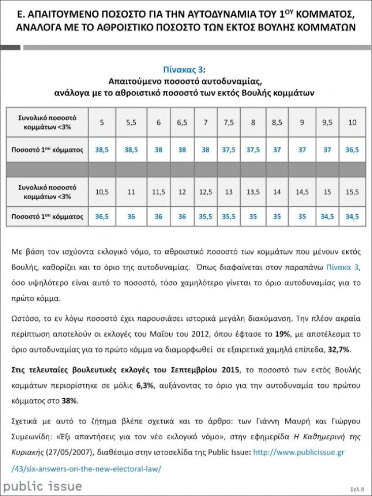 Η υποχώρηση και της επιρροής της Ένωσης Κεντρώων, κάτω από το 3%, σε συνδυασμό με την ενίσχυση των Λοιπών κομμάτων (+2,5%), λειτουργούν ευνοϊκά για τον στόχο της ΝΔ να διασφαλίσει την κοινοβουλευτική της αυτοδυναμία, αρκεί η εκλογική της επιρροή να υπερβεί το εκτιμώμενο κάτω όριό της (35%).