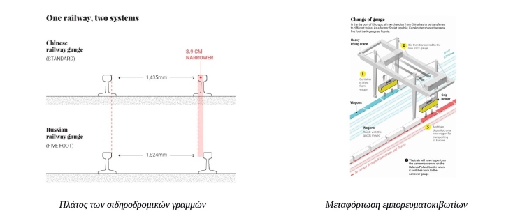 Πέραν της όποιας καχυποψίας εκ μέρους της Μόσχας έναντι του Πεκίνου, υπάρχουν και κάποια πρακτικά, τεχνικής φύσεως, εμπόδια, π.χ. το πλάτος των σιδηροδρομικών γραμμών στην Ρωσία. Οι Κινέζοι έχουν προτείνει στους Ρώσους δάνεια για την αναμόρφωση του ρωσικού σιδηροδρομικού δικτύου, αλλά η Μόσχα δεν δέχεται κάτι τέτοιο – μέχρι στιγμής τουλάχιστον και πιθανότατα για λόγους εθνικής ασφάλειας. Ως αποτέλεσμα, στο Khorgos της Κίνας, λίγα χιλιόμετρα πριν τα σύνορα με τον Καζαχστάν, γίνεται μεταφόρτωση όλων των εμπορευματοκιβωτίων σε τρένα που μπορούν να κινηθούν στο ρωσικό δίκτυο. Σημειωτέον, άλλη μια μεταφόρτωση γίνεται στα σύνορα Λευκορωσίας-Πολωνίας, προκειμένου να συνεχιστεί η μεταφορά των εμπορευμάτων από και πρός την Ευρώπη.