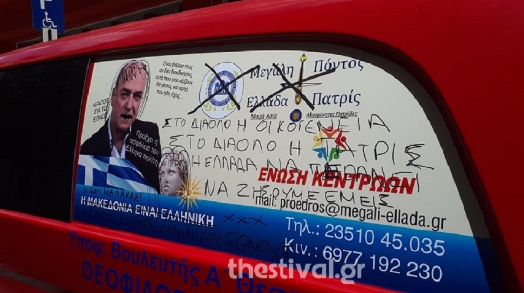 Απειλητικά μηνύματα, καταγγέλλει υποψήφιος βουλευτής της Ένωσης Κεντρώων, ότι έγραψαν άγνωστοι στο αυτοκίνητό του, στο οποίο προκάλεσαν και υλικές ζημιές.