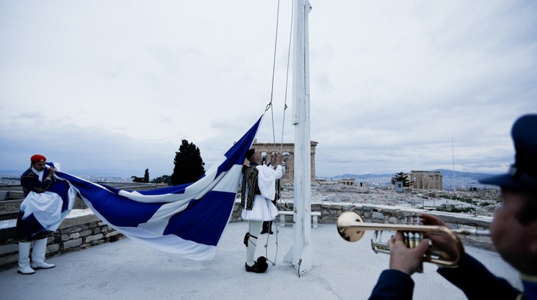 Έπαρση της ελληνικής σημαίας στην Ακρόπολη: Στον Ιερό Βράχο αύριο ο Κυριάκος Μητσοτάκης - Η ερμηνεία του Εθνικού Ύμνου από την Αναστασία Ζαννή.