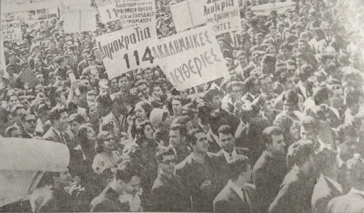 Η πρώτη επίσημη αντιδικτατορική διαδήλωση έγινε με αφορμή την κηδεία του Γεωργίου Παπανδρέου, στις 3 Νοέμβρη του ’68. Κρατώντας με τον Αλέκο Αλαβάνο το ίδιο στεφάνι, πορευτήκαμε από τη Μητρόπολη μέχρι το Α ́ Νεκροταφείο όπου έγινε η ταφή. Συνθήματα, μαχητικότητα και πάθος. Μέχρι και «ΠΑΠΑΝΔΡΕΟΥ ΔΥΟ ΦΟΡΕΣ» τολμήσαμε να φωνάξουμε. Κάποια στιγμή, προς το τέλος, φρόντισα να φύγω τρέχοντας ώστε να προλάβω να είμαι έγκαιρα στη Ν. Φιλαδέλφεια, όπως έκανα κάθε Κυριακή που η ΑΕΚ έπαιζε «μέσα». Στο σπίτι γύρισα το βραδάκι και φρόντισα να καθησυχάσω την αλαφιασμένη μάνα μου που όλο και κάτι είχε ψυλλιαστεί για την κηδεία. «Ομαδάρα, μάνα. Πέντε του ρίξαμε του Βόλου»