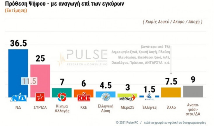 Δημοσκόπηση Pulse: Μπροστά με 11,5 μονάδες η ΝΔ έναντι του ΣΥΡΙΖΑ