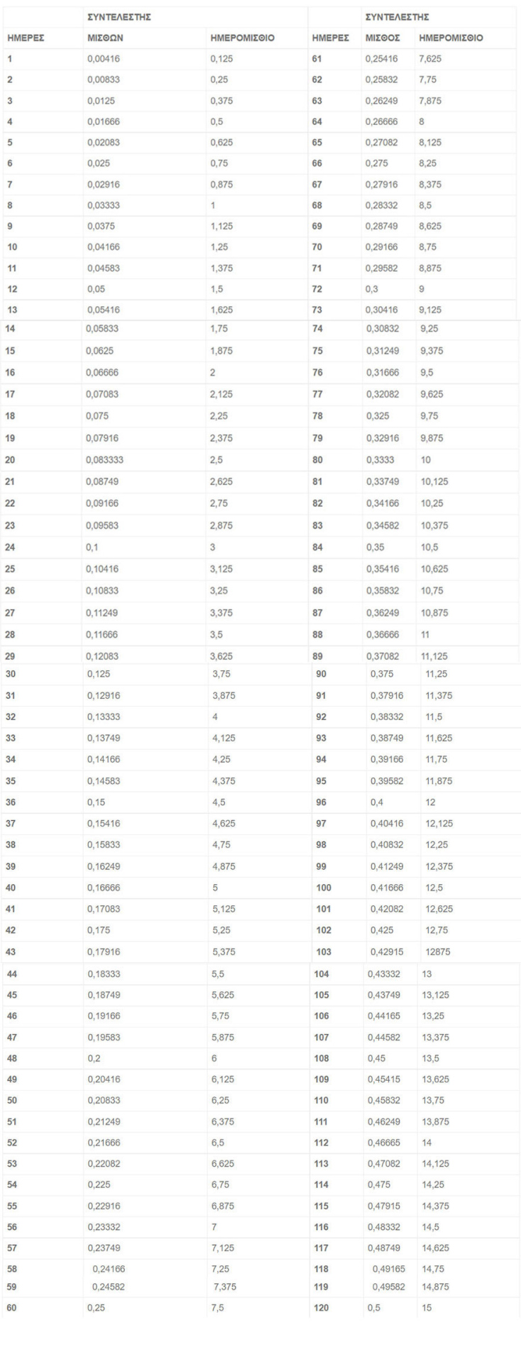 - Για αμειβόμενο με μισθό, ποσό ίσο με 1/15 του μισού μηνιαίου μισθού ή ένα ημερομίσθιο