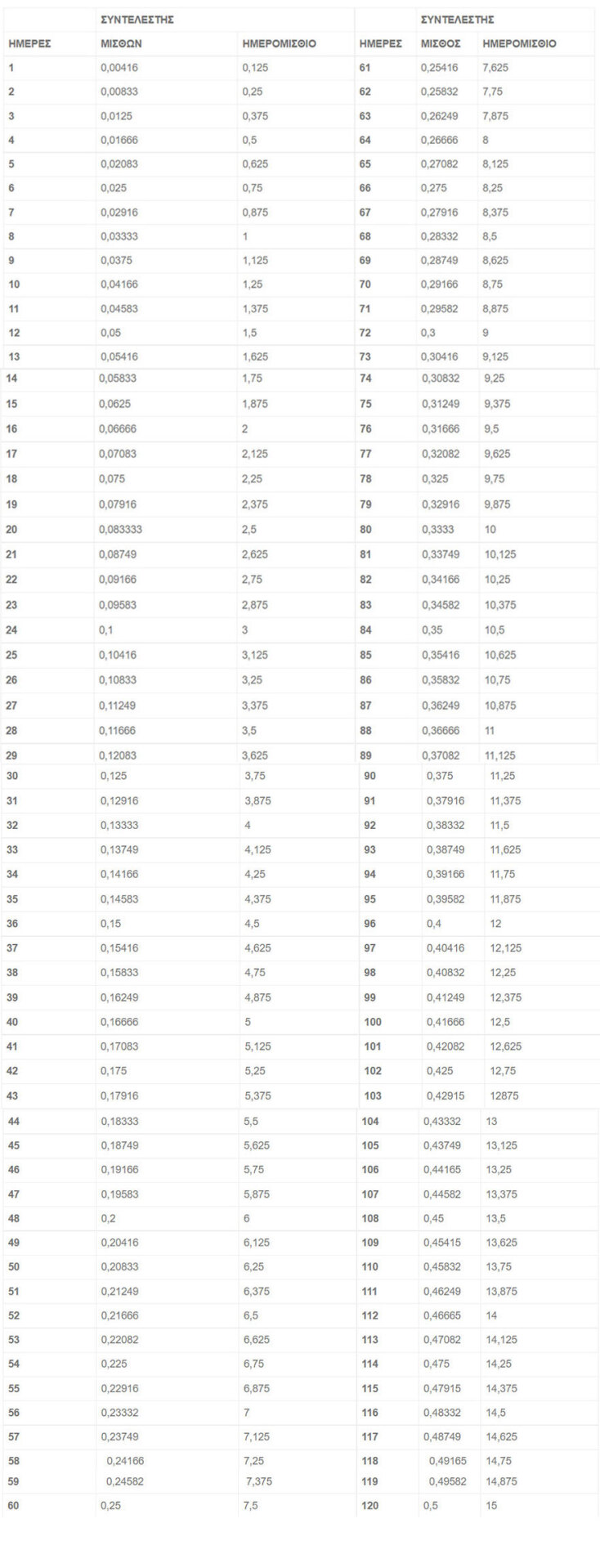 - Αμειβόμενος με μισθό, ποσό ίσο με 1/15 του μισού μηνιαίου μισθού