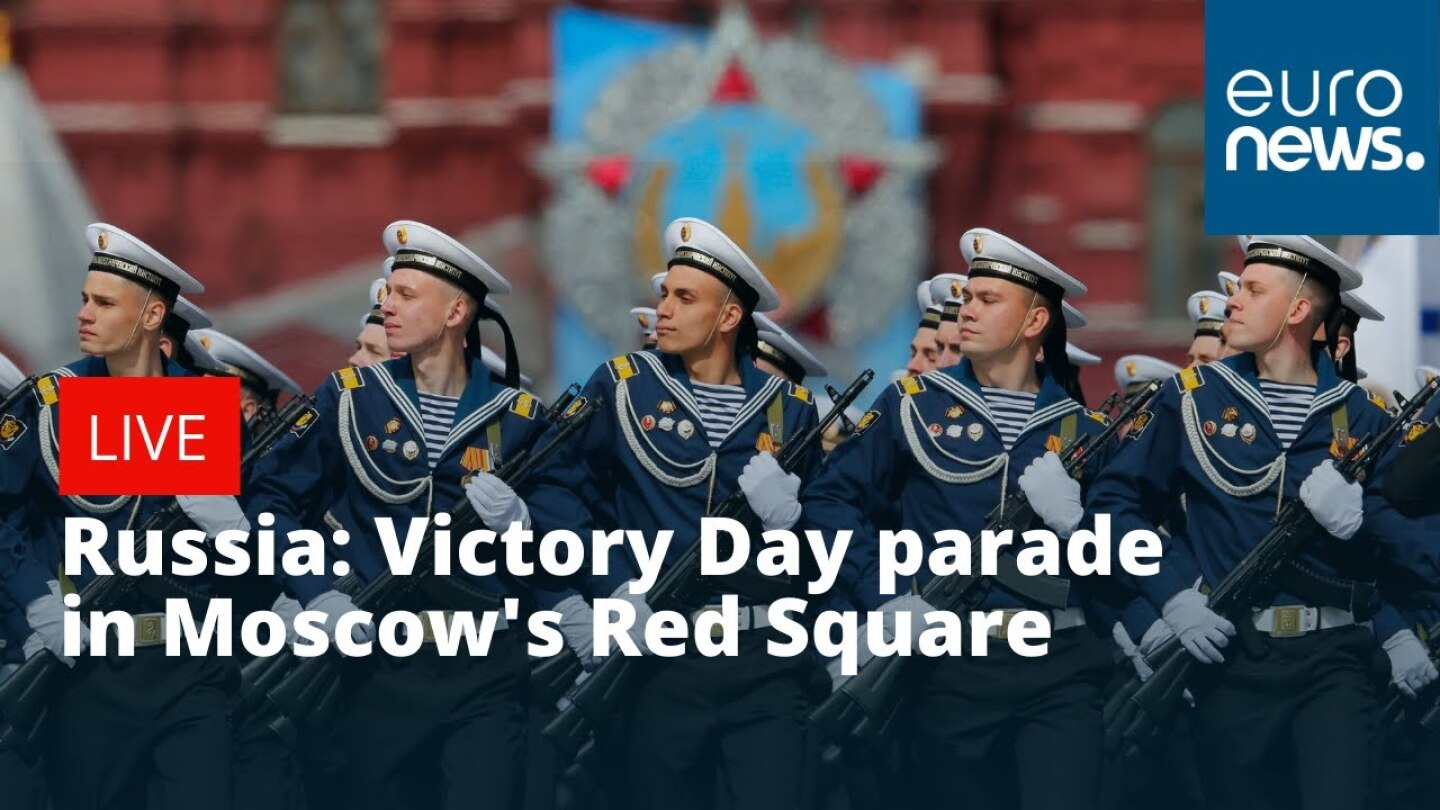 3) Εντωμεταξύ σε ρωσικό κανάλι γιορτάζουν την 9η Μαΐου δείχνοντας σε γιγαντοοθόνη ένα ευτυχισμένο σοβιετικό ζευγάρι Ρώσων.