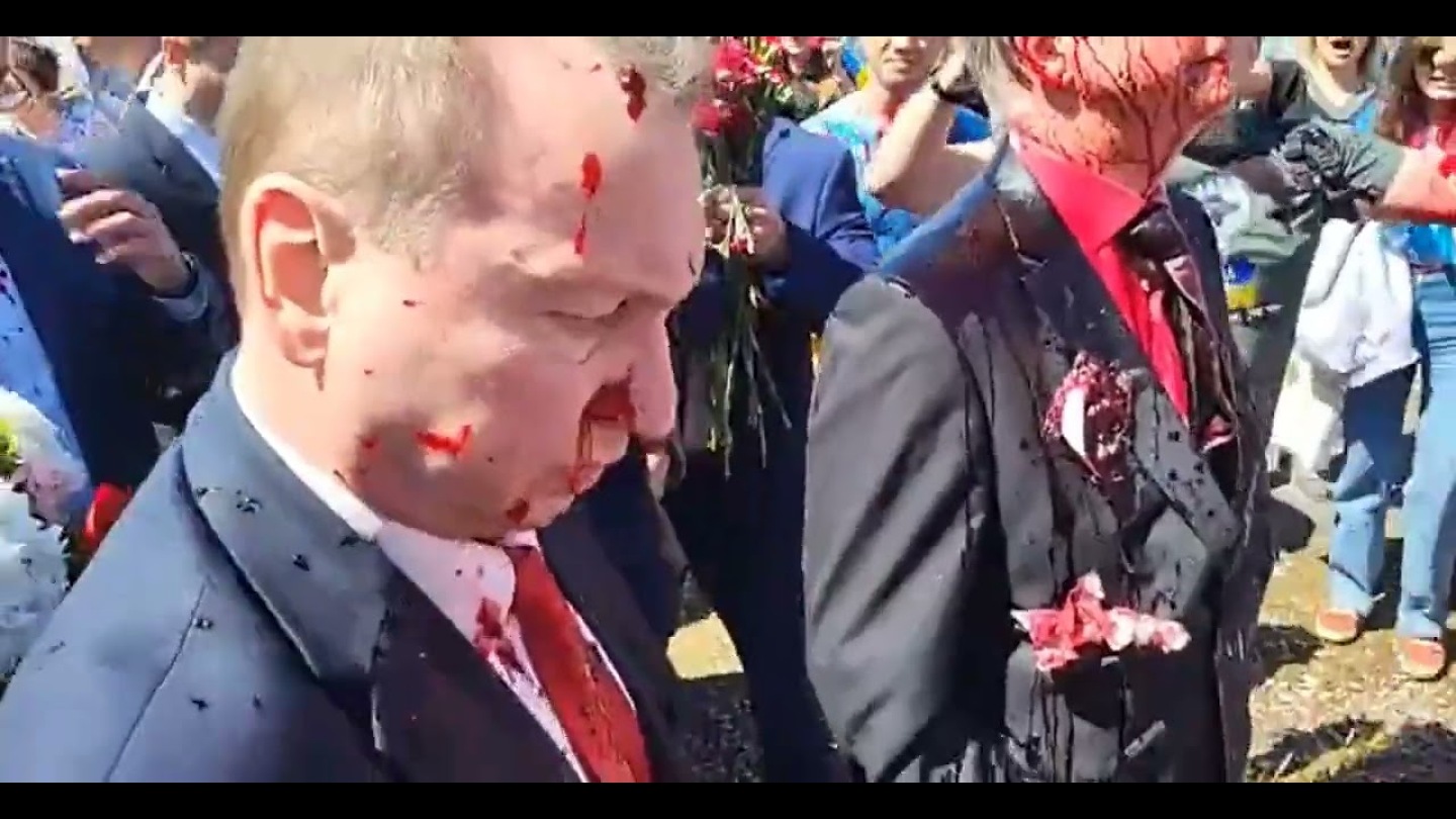 3) Τον Ρώσο πρέσβη στην Πολωνία λούζουν με κόκκινη μπογιά, όταν πάει να καταθέσει στεφάνι στο μνημείο που τιμούν τους Πολωνούς σοβιετικούς ήρωες του Β’ ΠΠ.