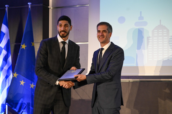 Στο πλαίσιο της Συνόδου, ο κ. Μπακογιάννης, απένειμε τιμητική πλακέτα -εκ μέρους των διοργανωτών της- στον Ενές Καντέρ, ακτιβιστή και διεθνή μπασκετμπολίστα για την ενεργό του δράση στην υπεράσπιση των Ανθρωπίνων Δικαιωμάτων και της Ελευθερίας.