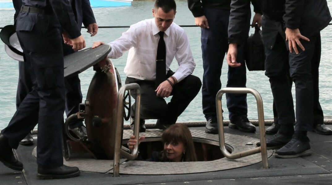 Μάλιστα, η ΠτΔ μπήκε στο εσωτερικό του υποβρυχίου και συμμετείχε σε «βόλτα» από τον Ναύσταθμο Σαλαμίνας προς στον Πειραιά.
