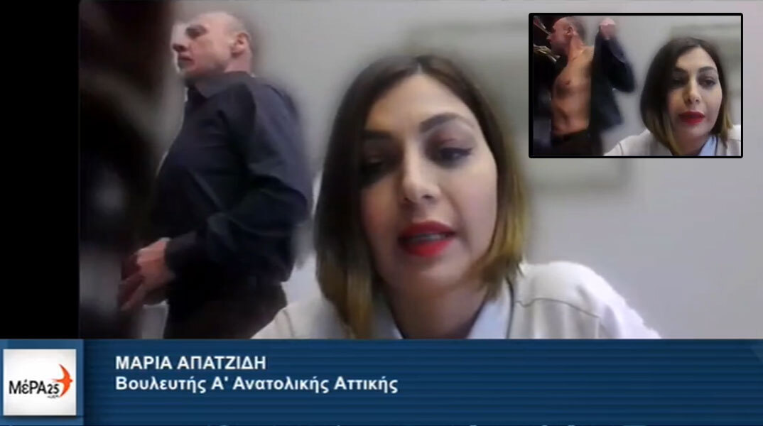 Την ώρα της τοποθέτησης της Μαρίας Απατζίδη, βουλευτή του κόμματος του Γιάνη Βαρουφάκη, ως ειδικής αγορήτριας επί του νομοσχεδίου για τη Δημοτική Αστυνομία στην αρμόδια επιτροπή της Βουλής μέσω webex από το γραφείο του κόμματος, ο συνάδελφός της Κλέων Γρηγοριάδης, άρχισε να γδύνεται.