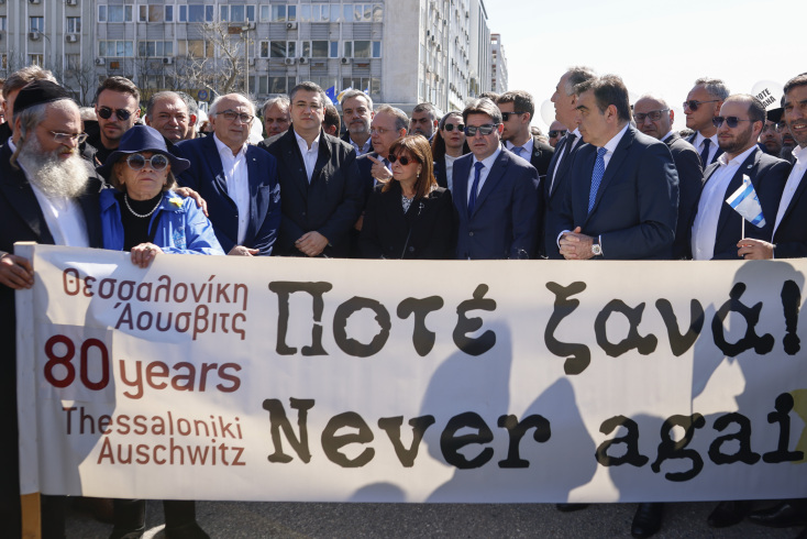 «Βρισκόμαστε εδώ, στον απόηχο της τραγωδίας των Τεμπών, την οποία ολόκληρη η ελληνική κοινωνία βιώνει με αισθήματα βαθιάς συντριβής, για να διατηρήσουμε ζωντανή τη μνήμη ενός από τα πλέον επαίσχυντα και οδυνηρά συμβάντα του 20ου αιώνα. Ξεκινώντας από την πλατεία Ελευθερίας, τόπο εξευτελισμού και απάνθρωπης μεταχείρισης των Ελλήνων Εβραίων, πορευθήκαμε σιωπηλοί ως τον παλιό σιδηροδρομικό σταθμό, από όπου στις 15 Μαρτίου του 1943 αναχώρησε η πρώτη αμαξοστοιχία για το στρατόπεδο εξόντωσης Άουσβιτς-Μπιρκενάου. Ήταν μόνο μία από τις πολλές αμαξοστοιχίες που μετέφεραν σταδιακά και κάτω από άθλιες συνθήκες, μέσα σε βαγόνια μεταφοράς ζώων, περίπου 46.000 Εβραίους συμπολίτες μας στα ναζιστικά στρατόπεδα της φρίκης. Από αυτούς, στην αγαπημένη "Ιερουσαλήμ των Βαλκανίων", όπου οι Σεφαραδίτες πρόγονοί τους βρήκαν φιλόξενο καταφύγιο τον 15ο αιώνα, επέστρεψαν λιγότεροι από 2.000. Εκδηλώσεις μνήμης όπως η σημερινή είναι απαραίτητες ώστε να προβάλλονται, έστω με καθυστέρηση, τα πραγματικά γεγονότα της σύλληψης, του εκτοπισμού και τελικά της εξόντωσης των Εβραίων αδελφών μας. Γεγονότα αποτρόπαια που σφράγισαν τη ζωή της πόλης και άλλαξαν βίαια την πλούσια πολυπολιτισμική της ταυτότητα. Και είναι ιδιαίτερα σημαντικό το γεγονός ότι, ιδίως τα τελευταία χρόνια, η Θεσσαλονίκη έχει αναγνωρίσει το μερίδιο της ευθύνης που της αναλογεί και έχει ρητά καταδικάσει τα σφάλματα του παρελθόντος, σε μια προσπάθεια να επουλώσει το ιστορικό τραύμα», υπογράμμισε στην ομιλία της η Πρόεδρος της Δημοκρατίας, Κατερίνα Σακελλαροπούλου.