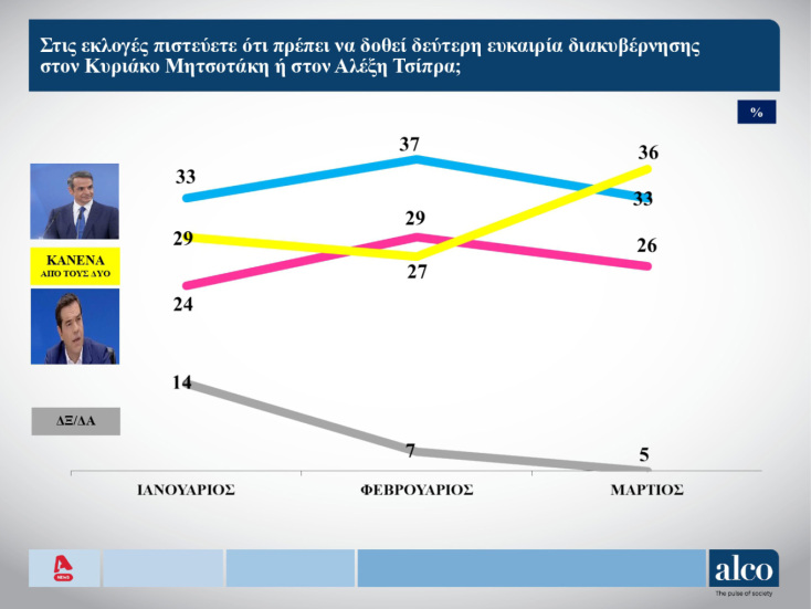 Δημοσκόπηση Alco: Στο 3,6% η διαφορά της ΝΔ από ΣΥΡΙΖΑ