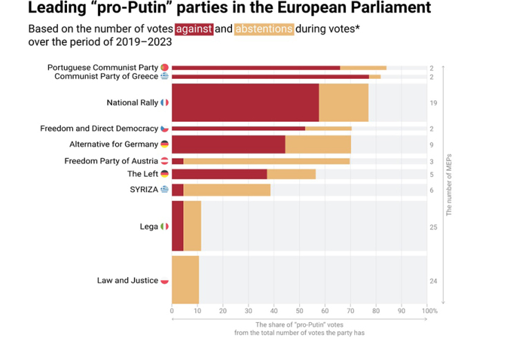 Την ώρα που γκρινιάζουμε, μεμψιμοιρούμε και αυτομαστιγωνόμαστε, η Ελλάδα, η χώρα του εξυπνότερου, εργατικότερου, εντιμότερου και πιο βασανισμένου λαού στον κόσμο, επιδεικνύει επιτυχίες δυσανάλογες του μεγέθους της, όχι μόνο και στον αθλητισμό αλλά και την πολιτική. Η τελευταία μεγάλη ελληνική διεθνής επιτυχία ήρθε μέσα από μια έρευνα της Novaya Gazeta (ολόκληρη μπορείτε να διαβάσετε εδώ) η οποία τιτλοφορείται «Τα πρωτοπαλίκαρα του Πούτιν» και μεταξύ άλλων έχει μια κατάταξη των 10 πιο «υπέρ-του-Πούτιν» (pro-Putin) κομμάτων του Ευρωπαϊκού Κοινοβουλίου. H κατάταξη γίνεται με βάση τις ψήφους ή τις αποχές σε σχετικές ψηφοφορίες και είναι αυτή: