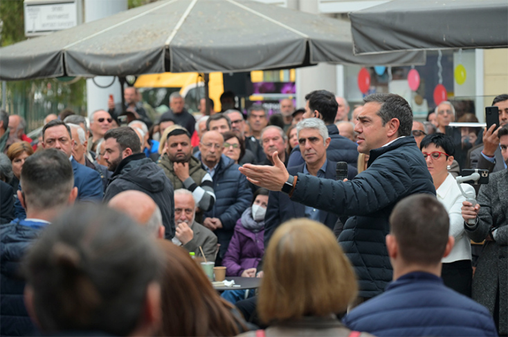 Επισημαίνοντας ότι σήμερα μιλά σε εργατική περιοχή, επικαλέστηκε μια αναφορά του Προέδρου της Βραζιλίας Λούλα, ότι είναι προτιμότερο να σε κυβερνά μια αριστερά που κάνει ό,τι μπορεί, παρά μια δεξιά που κάνει ό, τι θέλει, για να σχολιάσει ότι «η φράση κολλάει γάντι στα πράγματα στη χώρα μας». Είπε ότι ο ΣΥΡΙΖΑ: κυβέρνησε στις πιο δύσκολες συνθήκες, έκανε ό,τι μπορούσε να βγάλει μια χρεοκοπημένη χώρα από το βούρκο, έβγαλε τη χώρα από τα μνημόνια, ρύθμισε το χρέος, άφησε 37 δισ. στα ταμεία. «Μετά ήρθε μια δεξιά που ήρθε να κάνει ό,τι θέλει, με πλήρη ασυδοσία και αλαζονεία, έχοντας την αίσθηση του ανεξέλεγκτου, παραβίασαν ακόμη και τους κανόνες του Συντάγματος», πρόσθεσε, μιλώντας για την υπόθεση των παρακολουθήσεων». Σχολίασε ότι «συνεχίζουν να πιστεύουν ότι το κράτος τους ανήκει, ότι είναι κληρονομικό δικαίωμα, ότι η Ελλάδα έχει ακόμα βασιλεία». Κατηγόρησε τη ΝΔ για «κράτος-λάφυρο», αναφέροντας ότι «διπλασίασαν τους μετακλητούς, έδωσαν 30% αυξήσεις στους μισθούς τους για να βολέψουν τα δικά τους παιδιά, τριπλασίασαν τις διευθυντικές θέσεις στις υπηρεσίες κοινής ωφέλειας για να βολέψουν γαλάζια γκόλντεν μπόις». Επίσης είπε ότι «έδωσαν 10 δισ. ευρώ απευθείας αναθέσεις και κλειστούς διαγωνισμούς σε δικούς τους ανθρώπους», την ίδια στιγμή, όπως πρόσθεσε, που άφησαν τα δημόσια νοσοκομεία στο έλεος τους». Είπε ότι η αισχροκέρδεια δεν είναι εισαγόμενη, έχει την υπογραφή του κ. Μητσοτάκη και αυτή θα τελειώσει στις 21 Μαΐου.
