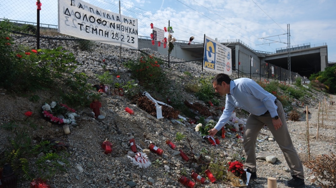 Η επίσκεψη στο σημείο της τραγωδίας στα Τέμπη έγινε στο περιθώριο της περιοδείας του προέδρου του ΣΥΡΙΖΑ - Προοδευτική Συμμαχία στη Λάρισα.