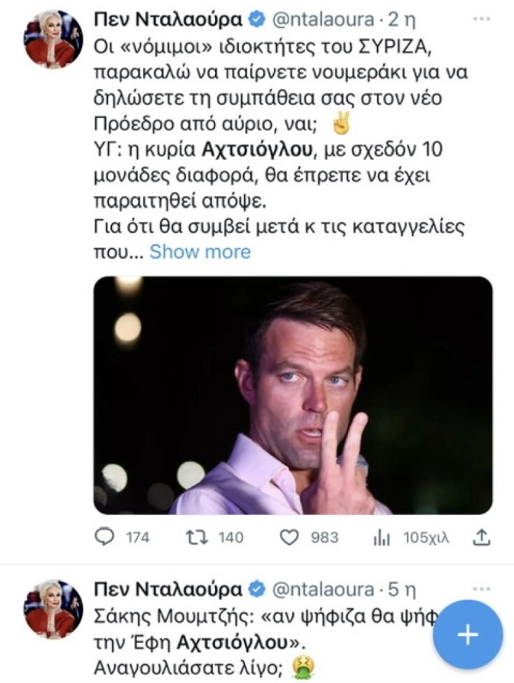 Όπως σημειώνει η ΕΦΣΥΝ, στο Χ «κεντρικό ρόλο στην ακατάπαυστη προώθηση του Κασσελάκη διαδραματίζει ο ανώνυμος "επαγγελματικός" λογαριασμός Πεν Νταλαούρα@ntalaoura (16.300 ακόλουθοι), πασίγνωστος στον χώρο του ΣΥΡΙΖΑ, υποστηρικτικός του κόμματος παλιάς "προεδρικής απόχρωσης". Αυτός ο λογαριασμός-"κόμβος" (με έντονη αλληλεπίδραση με τους γνωστούς ανώνυμους λογαριασμούς Marka2, Areti Athanasiou, kokkaliara) δημιουργήθηκε τον Φεβρουάριο του 2022 και έχει πάνω από 150 αναρτήσεις την ημέρα, στοιχείο που δείχνει αυτοματοποιημένη συμπεριφορά (bot/semi-bot)».