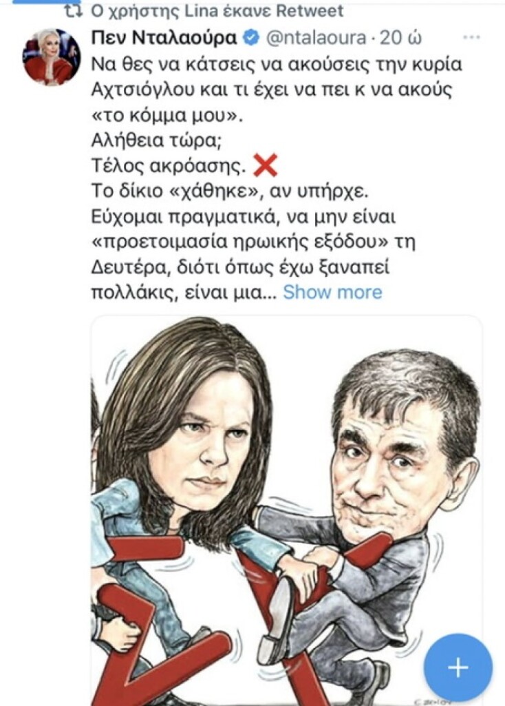 Βλέπω την κυρία Αχτσιόγλου πώς πηγαίνει σε όλους μα όλους τους τηλεοπτικούς υβριστές του Τσίπρα, με το σεις και με το...