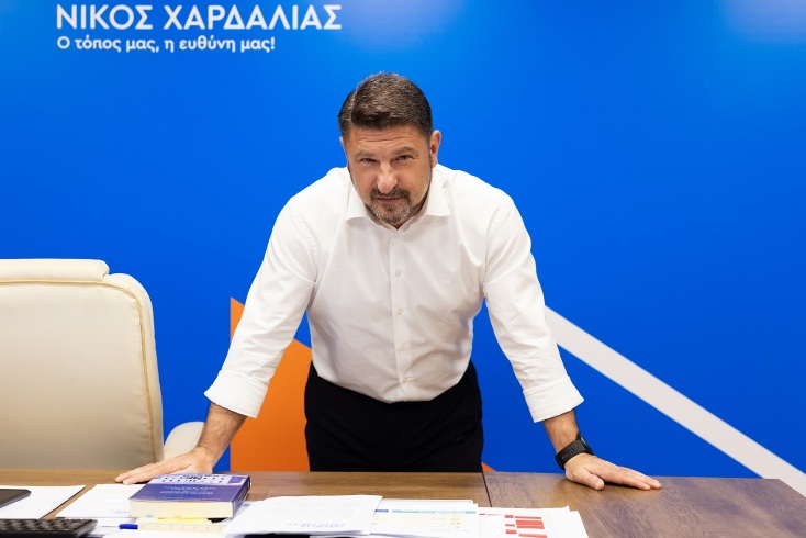 Οι πρώτες αναγνωριστικές ματιές στο «στρατηγείο» που στεγάζεται η ομάδα του συνδυασμού «Αττική Μπροστά» στην οδό Συγγρού θα μπορούσαν να είναι ένα reel. Σε μια διάφανη από γυαλί αίθουσα συσκέψεων δείχνει οθόνες, ακούει προσεκτικά τους γύρω του και συζητά, ενώ εσύ προσπαθείς να μαντέψεις τη γλώσσα του σώματος. Βγαίνοντας από το μίτινγκ, ο Νίκος Χαρδαλιάς, μας ζητά συγγνώμη για την πεντάλεπτη καθυστέρηση και μας υποδέχεται στο γραφείο του. Φουλ επιχειρησιακό, δεν μοιάζει με τα αυστηρά κυριλέ γραφεία των περισσότερων πολιτικών. Κάθε αντικείμενο μοιάζει να έχει κάποιον λόγο που βρίσκεται εκεί. Είναι ένας πολύπειρος πολιτικός που ξεκίνησε νεαρός με ένα ρεκόρ 2.200 σταυρών στον Βύρωνα – κάτι που μέχρι σήμερα παραμένει αξεπέραστο. Είναι από τα πρόσωπα που αναδείχτηκαν στην κεντρική πολιτική σκηνή μετά την πορεία του στην Τοπική Αυτοδιοίκηση. Ένας άνθρωπος που σε κοιτά διαρκώς στα μάτια όταν του μιλάς και ζητά από εκατομμύρια πολίτες της Αττικής να πάρουν μια απόφαση που θα έχει αντίκτυπο στη ζωή τους.