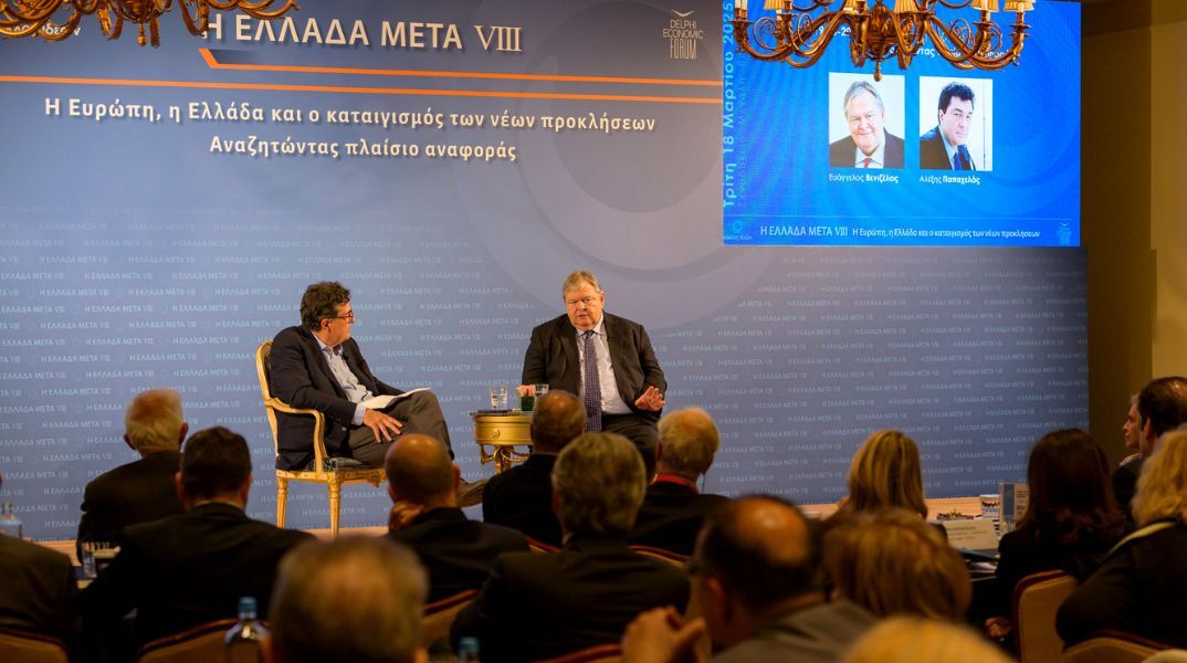 Ο Ευάγγελος Βενιζέλος, στην καταληκτική συζήτηση του Συνεδρίου του Κύκλου Ιδεών το βράδυ της Τρίτης (18/3), απαντώντας σε ερωτήσεις του Αλέξη Παπαχελά, αναφέρθηκε μεταξύ άλλων στις ενέργειες του Αμερικανού προέδρου Ντόναλντ Τραμπ, τη στάση της Ελλάδας στην κρίση της Ουκρανίας, αλλά και τη στάση της χώρας απέναντι στον ρόλο που διεκδικεί η Τουρκία στα νέα δεδομένα που διαμορφώνονται για την ασφάλεια και την άμυνα της Ευρώπης, ενώ μίλησε και για τις εσωτερικές πολιτικές εξελίξεις.