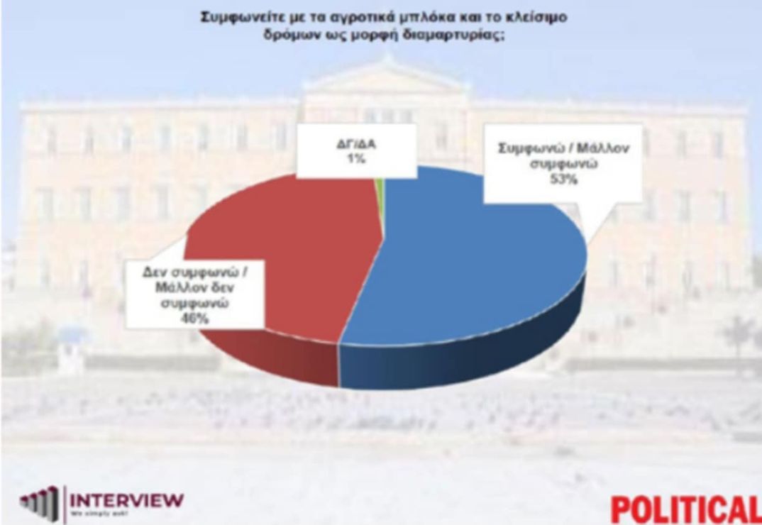 Δημοσκόπηση Interview: Η ΝΔ πάνω από το 30% - Ναι στους αγρότες, όχι στα μπλόκα