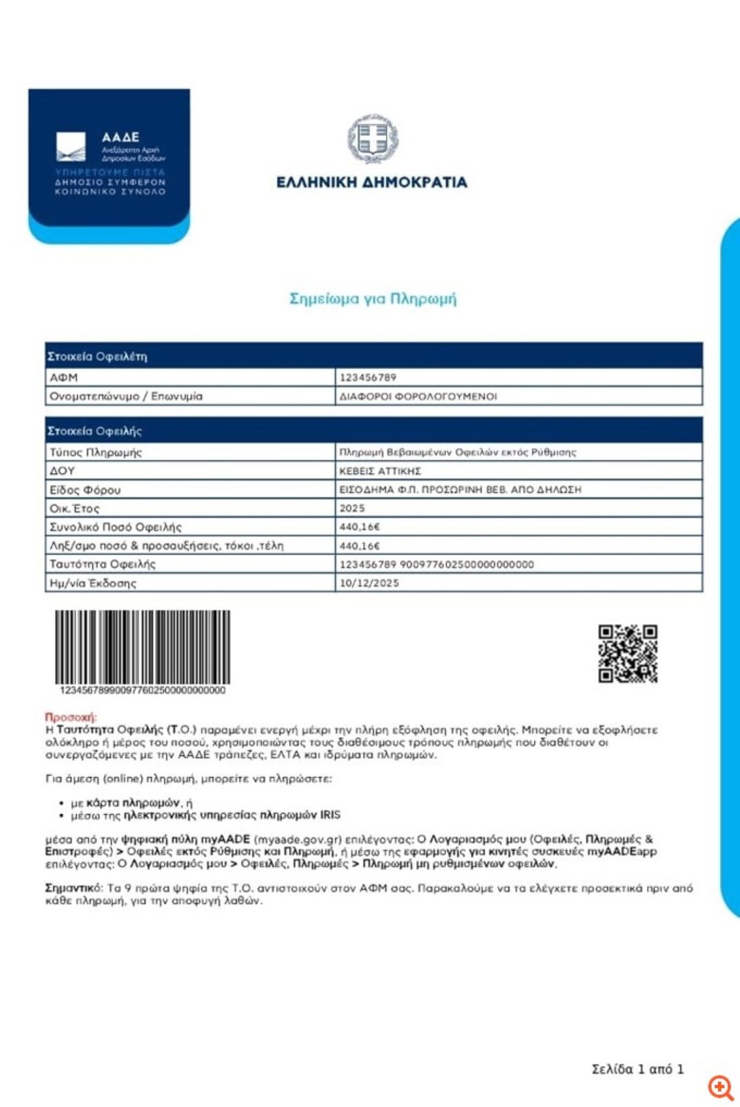 ΑΑΔΕ: QR Code και Barcode για εύκολες και γρήγορες πληρωμές οφειλών