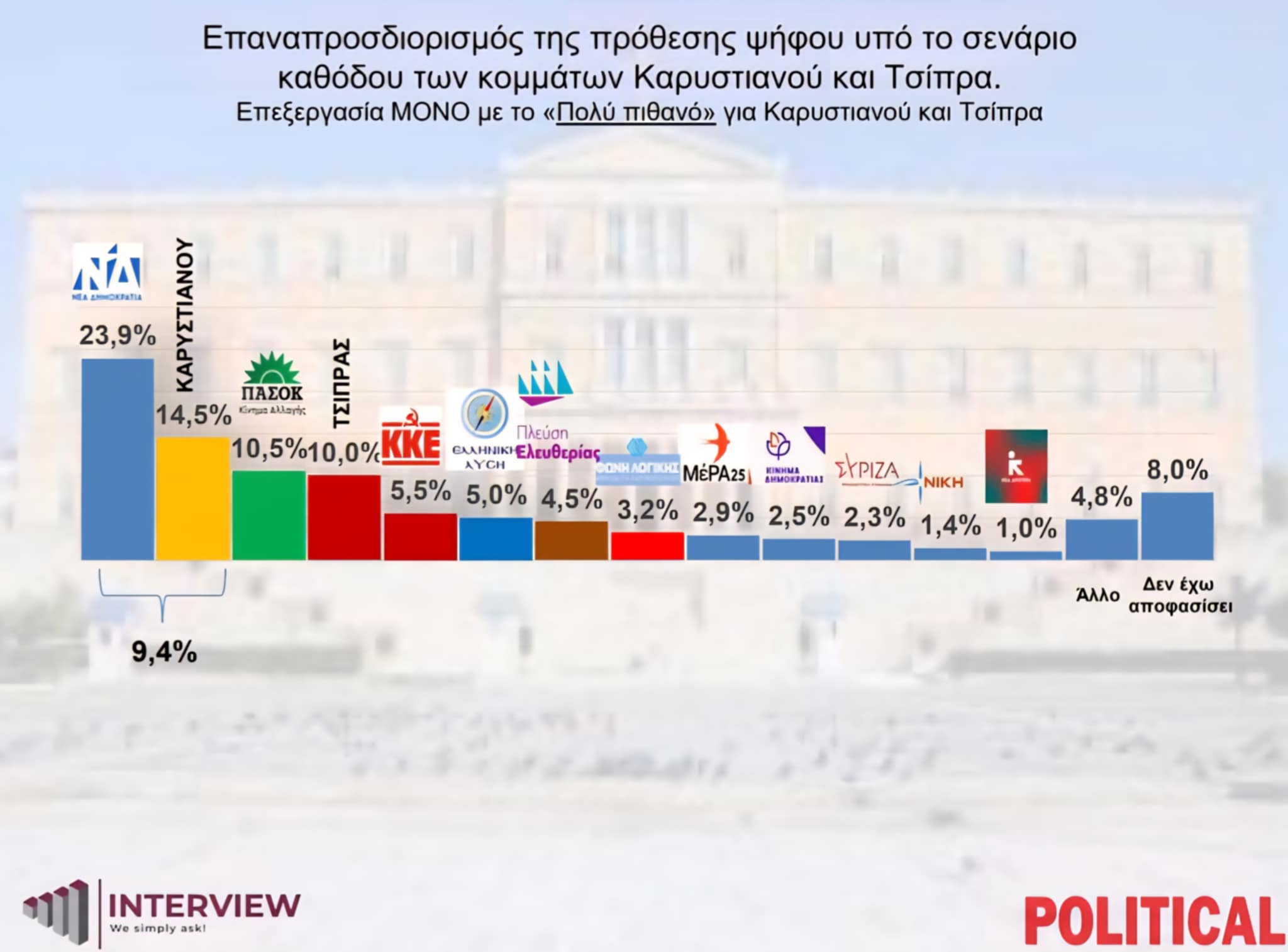 Δημοσκόπηση Interview: Ποια θα ήταν η εικόνα αν τα κόμματα Καρυστιανού και Τσίπρα κατέβαιναν στις εκλογές