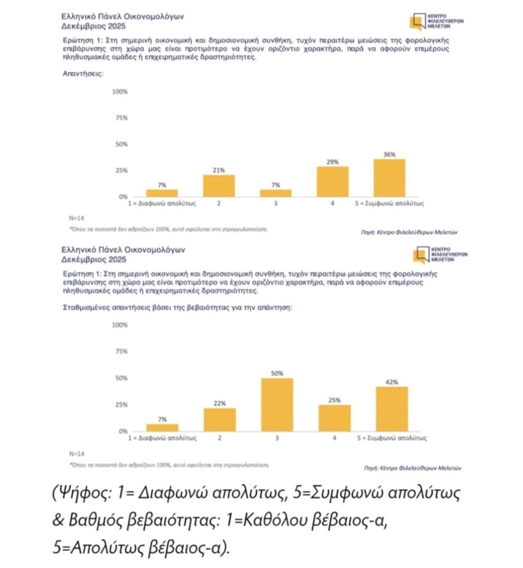 Πάνελ Οικονομολόγων ΚΕΦΙΜ: Υπέρ των οριζόντιων φοροελαφρύνσεων η πλειοψηφία