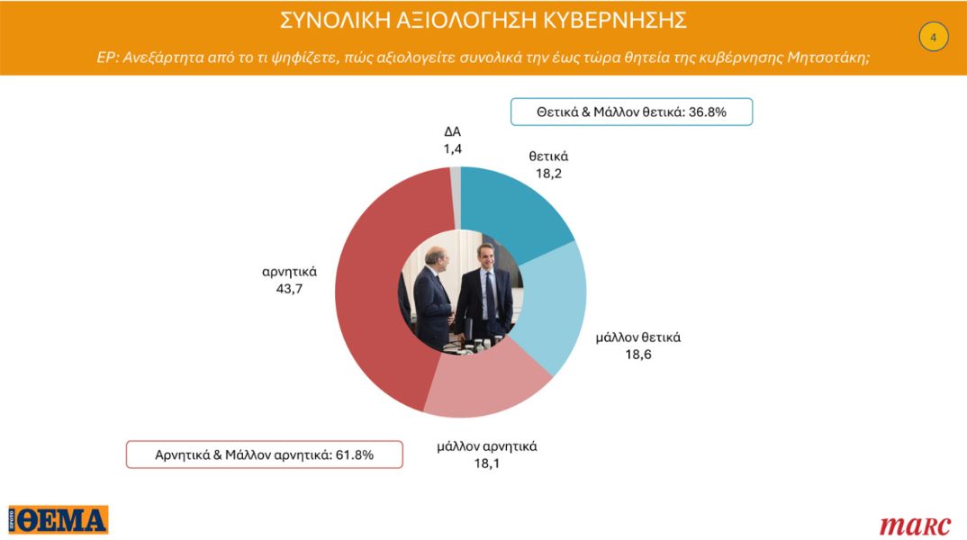 Προβάδισμα ΝΔ, αδύναμο ΠΑΣΟΚ, ρευστό κέντρο και διακομματική στήριξη μεταρρυθμίσεων Μητσοτάκη στη τελευταία δημοσκόπηση της Marc