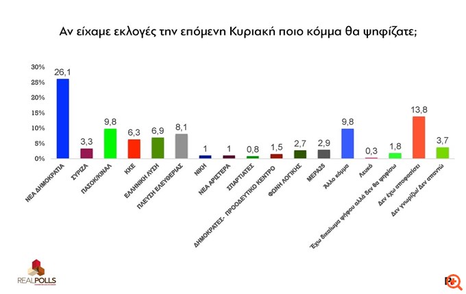Η τρίτη μέτρηση της RealPolls για το 2026 πραγματοποιήθηκε το διάστημα 8–10 Μαρτίου σε δείγμα 1.613 ατόμων.