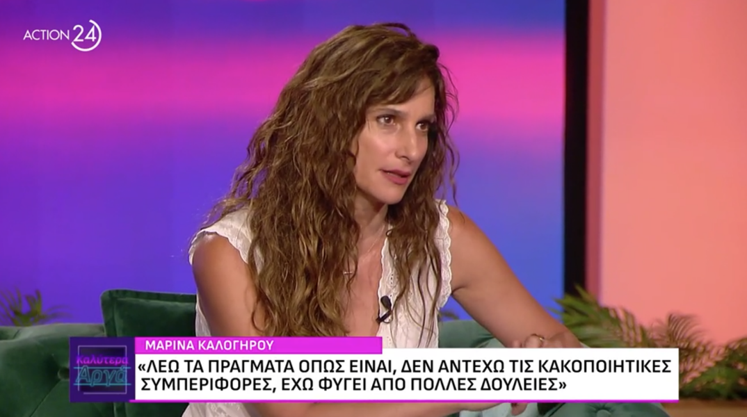 Η Μαρίνα Καλογήρου είπε ότι αποκάλυψε στους γονείς της όσα είχε βιώσει αρκετά χρόνια. «Οι άνθρωποι που με κακοποίησαν ήταν δύο φίλοι της οικογένειας και δυο συγγενείς. Δεν θυμάμαι να μου είχαν πει να μην το πω πουθενά, αλλά μπορεί και να μου το είχαν πει. Αυτό που θυμάμαι είναι να αντέχω. Το ότι έχω εισπράξει κακοποίηση και ότι το έχω μέσα μου το κατάλαβα πριν από έναν μήνα. Δεν το είχα μπλοκάρει, πίστευα ότι δεν μου έχει αφήσει κάτι μέσα μου κακό. Με επηρέασε τρομερά. Έχω μια συγκλονιστική ψυχοθεραπεύτρια, το βρήκαμε κατά λάθος. Βρήκαμε την ωραιοποίηση που κάνω στη ζωή, εγώ είχα σημαία την αλήθεια και ξαφνικά κατάλαβα ότι λέω ψέματα και στον ίδιο μου τον εαυτό, κάνω focus μόνο στο καλό. Μέσω της ωραιοποίησης το βρήκαμε. Καταλάβαμε ότι εγώ ζούσα μία φρικτή κατάσταση την οποία έκανα ότι δεν τη ζούσα, σώπαινα και έφτιαχνα έναν δικό μου φανταστικό τρόπο».