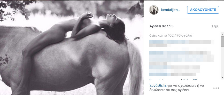 Ο λόγος για την Κένταλ Τζένερ η οποία ανέβασε μια γυμνή φωτογραφία πάνω σε ένα πανέμορφο άτι.