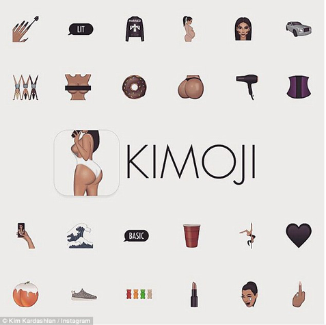 Ενθουσιασμένη η Κιμ Καρντάσιαν ανακοινώνει στον λογαριασμό της στο Instagram ότι έχει δημιουργήσει τη δική της σειρά εικόνων emoji. Επιστράτευσε, μάλιστα, όλη τη φαντασία της και τα «βάπτισε» Kimojis. Η πηγή έμπνευσης για τα εικονίδια συναισθημάτων είναι όλα όσα έχουν κάνει διάσημη τη σταρ των ριάλιτι: οι καμπύλες της, τα οπίσθια της, τα μαγιό της, τα κραγιόν και άλλα πολλά. Η Καρντάσιαν είπε ότι τα kimoji της είναι ένα δώρο της τελευταίας στιγμής προς τους θαυμαστές της.