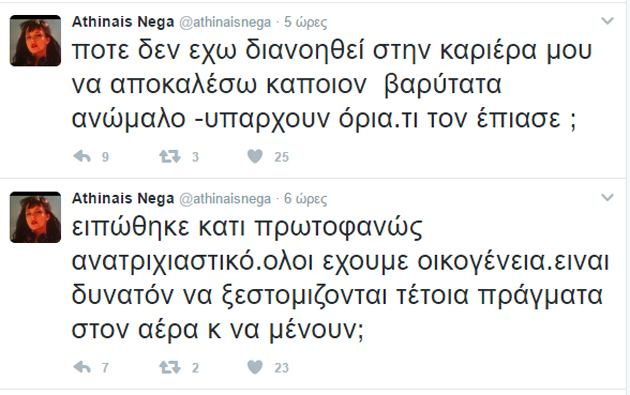 Ενώ ο Γιώργος Λιάγκας παραμένει ασύλληπτος μετά την μήνυση εναντίον του, η Αθηναΐς Νέγκα έγραψε στο Twitter για τα λεγόμενα του παρουσιαστή, που την οδήγησαν να κινηθεί νομικά.
