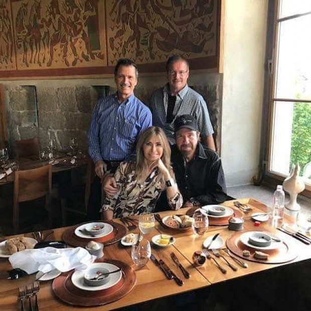 Ο ηθοποιός δημοσίευσε στα μέσα κοινωνικής δικτύωσης φωτογραφίες από εστιατόριο στην παλιά πόλη της Λιουμπλιάνας όπου βρισκόταν μαζί με τη σύζυγό του Τζίνα και δύο φίλους και από ειδυλλιακό τοπίο στο κάστρο έξω από τη σλοβενική πρωτεύουσα. «Υπέροχη πόλη και υπέροχοι άνθρωποι», έγραψε ο Τσακ Νόρις στο Instagram και στο Facebook.