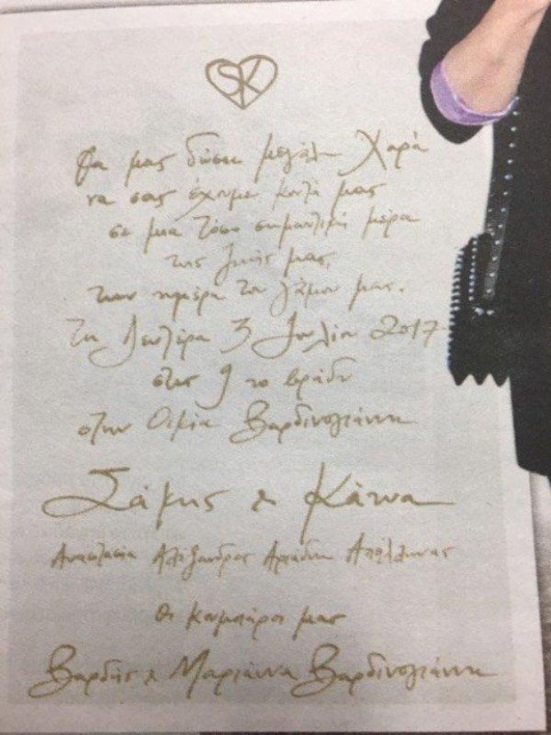 Δείτε το ιδιόχειρο προσκλητήριο γάμου του Σάκη Ρουβά και της Κάτιας Ζυγούλη