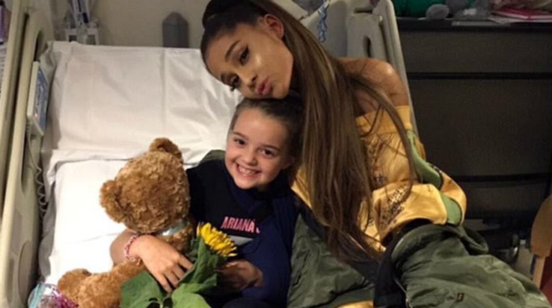 Η 23χρονη μοίρασε δώρα, αγκαλιές, φιλιά και αυτόγραφα με τα παιδιά που λατρεύουν την ίδια και τη μουσική τους και ξαφνιάστηκαν ευχάριστα βλέποντας μπροστά τους τη «βασίλισσά» τους. Η επίσκεψη έγινε με αφορμή τη μεγάλη μουσική επιστροφή της Αριάνα Γκράντε στην πόλη του Μάντσεστερ. Την Κυριακή η σταρ της ποπ θα δώσει μια μεγάλη φιλανθρωπική συναυλία στη μνήμη των 22 θυμάτων του τρόμου παρέα με τους πολλούς διάσημους φίλους της επί σκηνής, όπως οι: Τζάστιν Μπίμπερ, Μάιλι Σάιρους, Κέιτι Πέρι, Take That, Coldplay και άλλοι. Τα χρήματα που θα συγκεντρωθούν από τη συναυλία θα διατεθούν στις οικογένειες των θυμάτων που άφησε πίσω του ο 22χρονος βομβιστής αυτοκτονίας, Σαλμάν Αμπεντί.