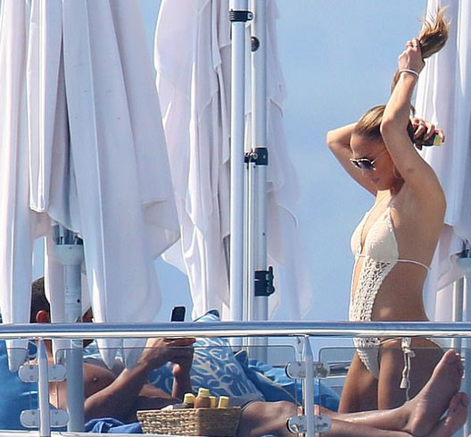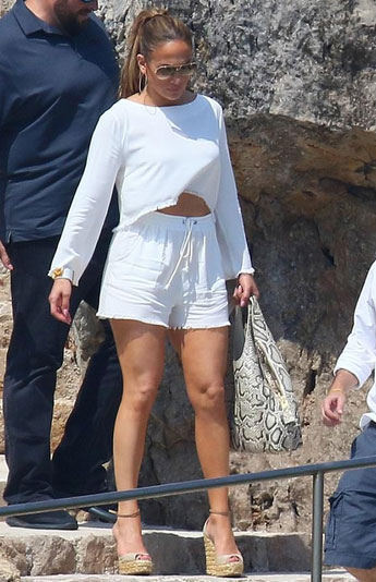 Η 47χρονη Λόπεζ κέρδισε το θαυμασμό των παπαράτσι με το υπέροχο λευκό πλεκτό μαγιό της, χαρίζοντάς τους μερικές χαλαρές και φυσικές πόζες.