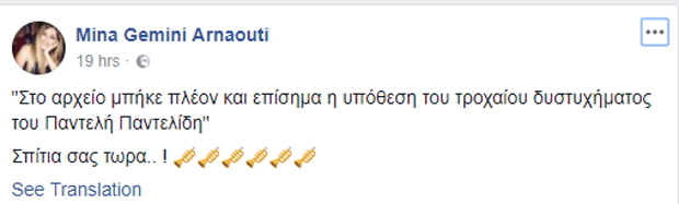 «Στο αρχείο μπήκε πλέον και επίσημα η υπόθεση του τροχαίου δυστυχήματος του Παντελή Παντελίδη… Σπίτια σας τώρα..!» έγραψε χαρακτηριστικά.