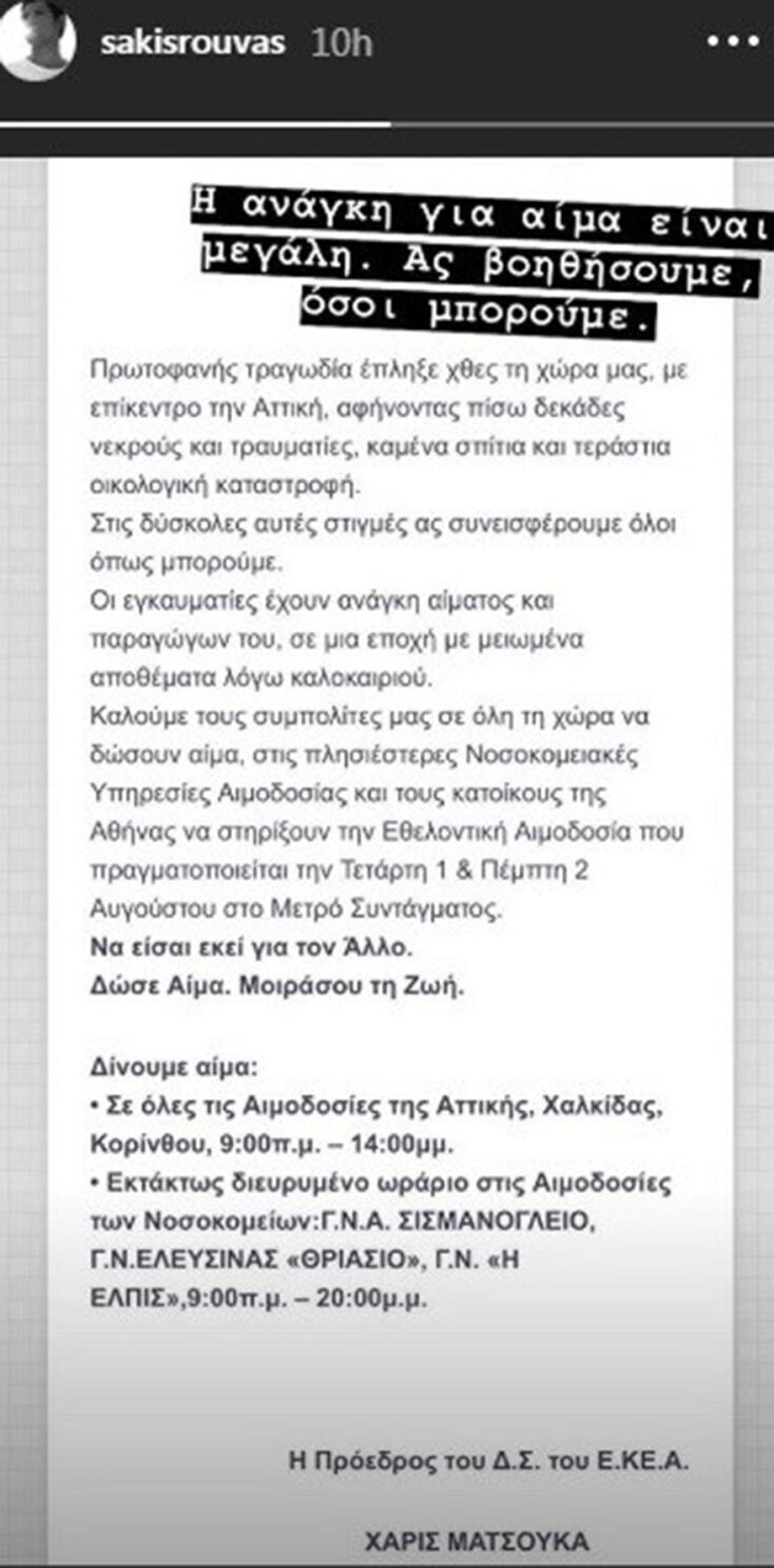Σάκης Ρουβάς για την εθνική τραγωδία: «Ας είμαστε ενωμένοι» (εικόνες)