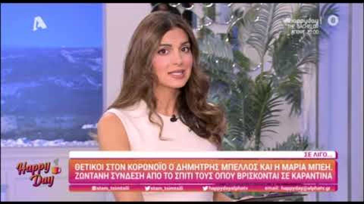 «Η Μαρία Μπέη και ο Δημήτρης Μπέλλος απουσιάζουν όλη την εβδομάδα. Δεν απουσιάζουν τυχαία, αλλά έχουν επιβεβαιωθεί ως θετικά κρούσματα κορωνοϊού. Η Μαρία και ο Δημήτρης έρχονται Δευτέρα με Πέμπτη στο Happy Day. Την Πέμπτη και την Παρασκευή βγήκαν να κάνουν τα τελευταία ψώνια που ήταν ανοικτή η αγορά. Η Μαρία άρχισε να μη νιώθει καλά την Κυριακή που ξύπνησε. Τη Δευτέρα το πρωί υπεβλήθησαν σε μοριακό τεστ, η Μαρία ήταν θετική. Ο Δημήτρης αρχικά δεν είχε τίποτα, αλλά προς Τετάρτη άρχιζε να εμφανίζει συμπτώματα. Θα μας τα πουν σε λίγο οι ίδιοι», είπε σήμερα στον «αέρα» η Σταματίνα Τσιμτσιλή.